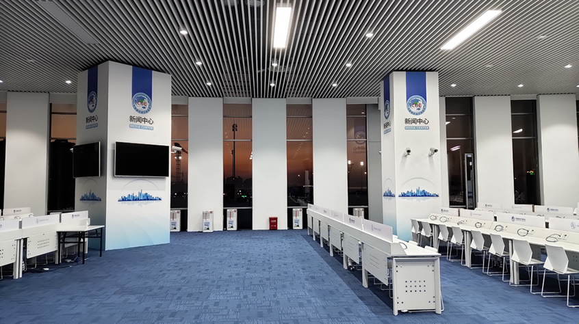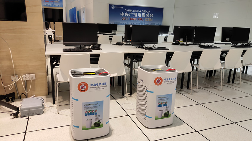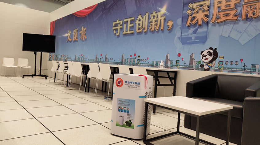 純物理方法殺滅新冠病毒的空氣凈化器在國家會展中心(上海)第三屆進博會10000平方新聞中心安裝完畢,以及新聞中心全體工作人員人手一份的殺滅新冠易呼吸口罩伴侶已送到指定地點,寧波中冶電子科技公司為進博會新聞中心安全防疫保駕護航!